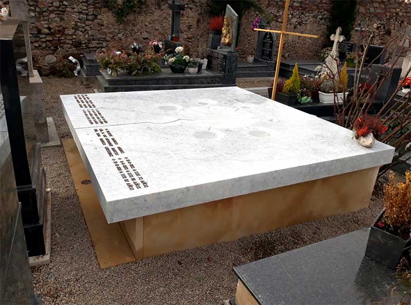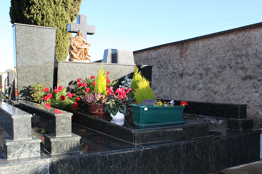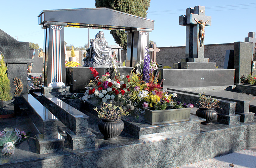 Panteón realizado con la supervisión de los arquitectos que lo han diseñado con diferentes características. Tiene la imagen de un petroglifo (icono celta) que recibe el agua de la lluvia y la envía por canales al centro de la lápida.