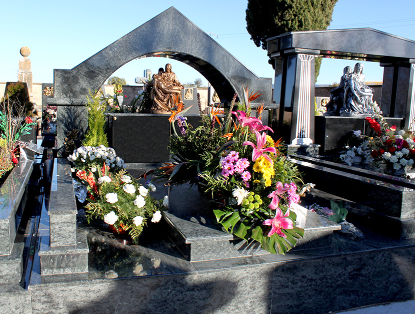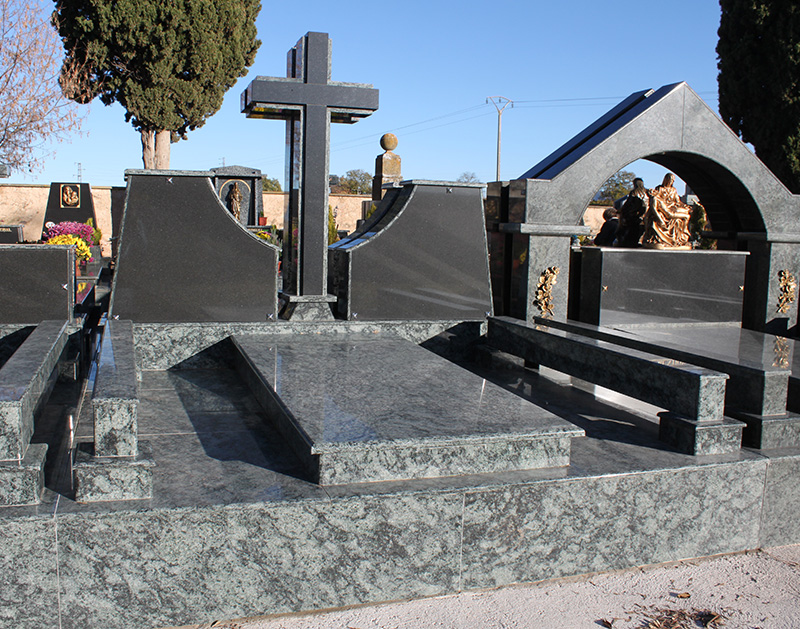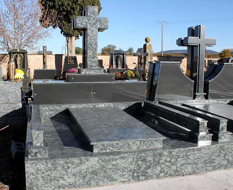 Modelos de panteones en granito natural con cercado y costados.